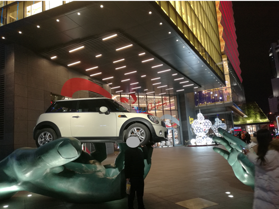 目前入口廣場的景觀更多的是通過下沉式廣場來體現(xiàn),本書下沉式廣場的一個功能就是為了負一層的導流,設施景觀打卡點也是實現(xiàn)這一目的。另外雖然下沉式廣場有樓梯,但最好要再設置一組扶梯,畢竟大家普遍不愿意走樓梯。