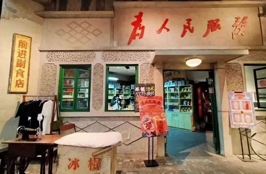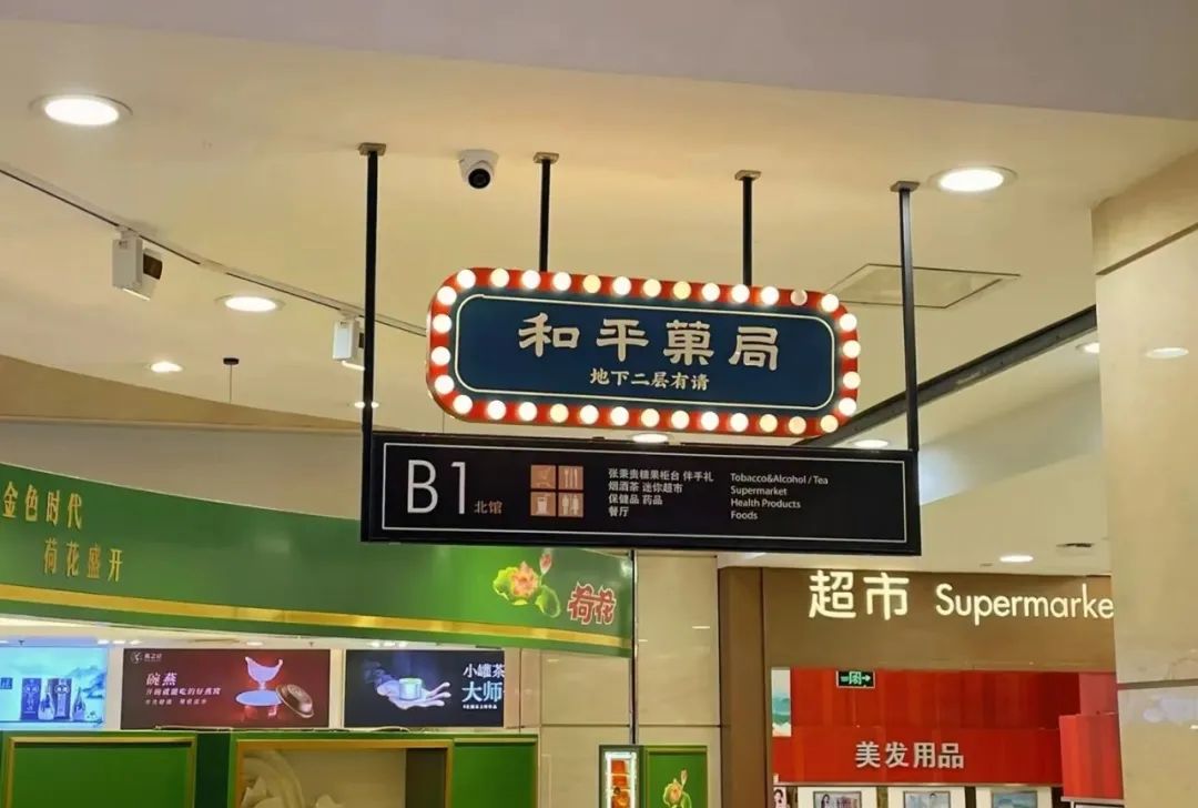 和平菓局位于王府井百貨地下二層,通過引入戲精學院、上新故宮等文創(chuàng)IP資源,還原了上世紀60~80年代老北京胡同的生活場景,打造成如今沉浸式商業(yè)體驗空間。