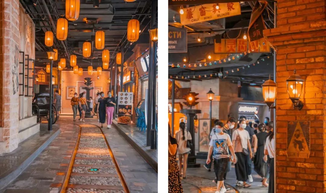 主題街區(qū)設計巧妙融合老上海城市建筑和生活方式,從十六鋪碼頭到洋行倉庫,從有軌電車、老式黃包車到燈紅酒綠的十里洋場和老式斑駁的石庫門磚瓦,讓人感覺回到了從前的弄堂。