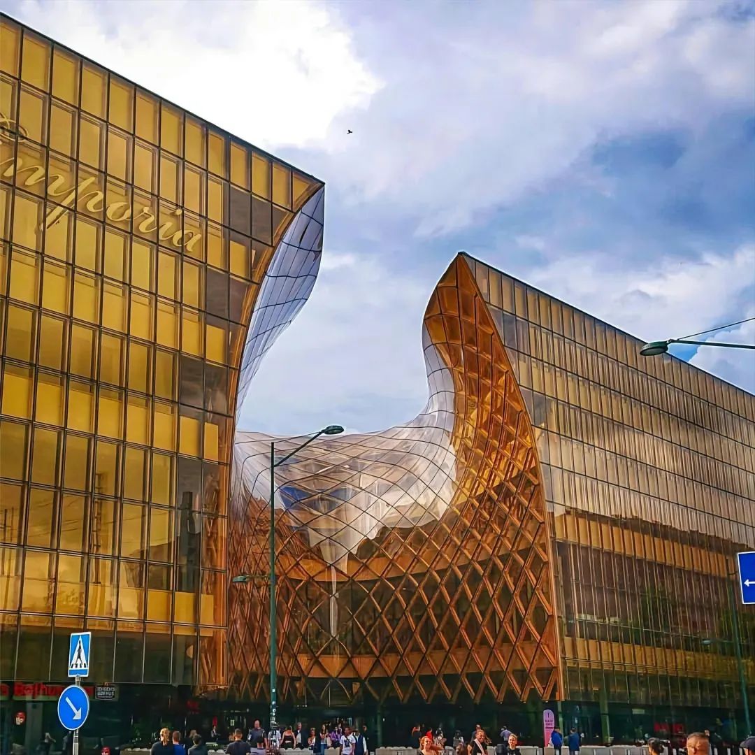 瑞典Emporia是馬爾默迄今規(guī)模最大的購物中心,建筑面積2.7萬㎡,是一座集商業(yè)、辦公、住宅于一體的混合功能的城市綜合體。項目的設(shè)計構(gòu)想來源于想將整個建筑完全融入城市肌理中,建筑整體外形全部采用金色玻璃幕墻,凹凸有致的曲線使整個造型非??鋸埱乙俗⒛?;拱頂造型呈現(xiàn)出青銅赭石的色調(diào),非常有意境;入口處采用雙曲面玻璃幕墻覆呈對角線覆蓋,在這個視角可以感受到云層涌動的殘缺美感,吸引眾人來此觀看拍攝。