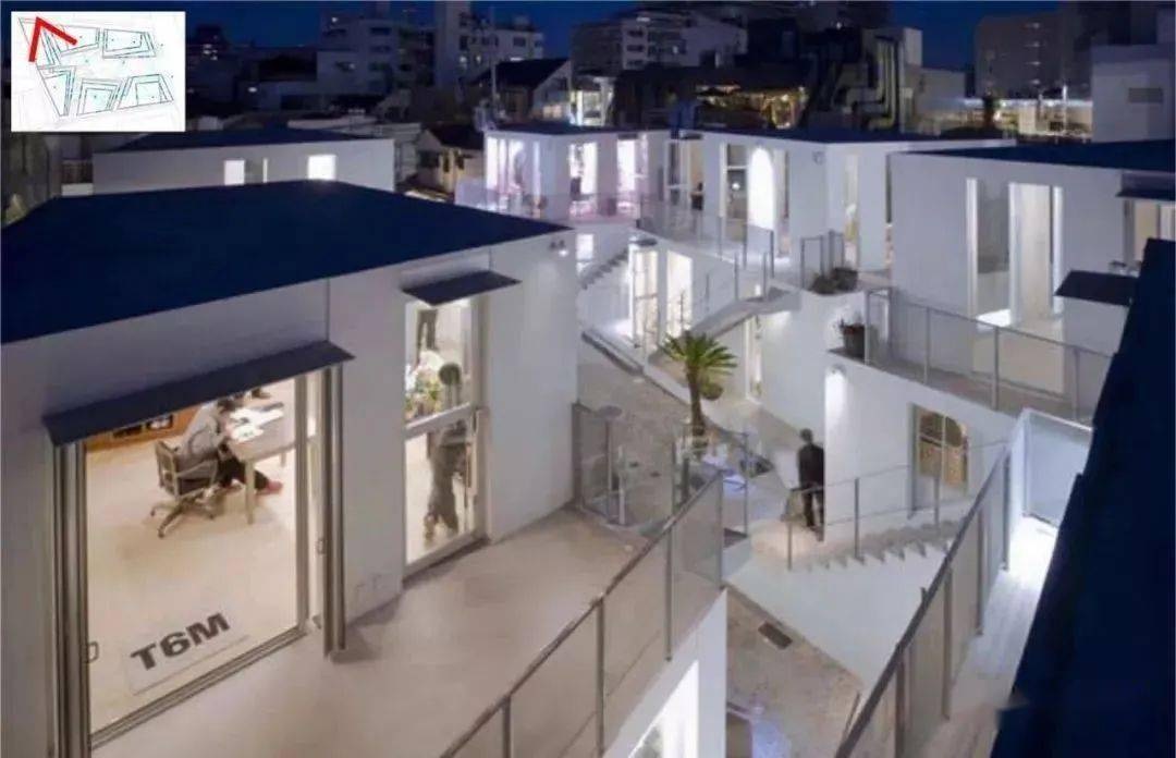 看似分離的建筑物,其中相互連結(jié)互通,讓消費(fèi)者身在其中感受到奇妙的空間感,在多層次的空間中體會到多元性的體驗(yàn)感,在隔開的建筑上開通了許多窗口,使人在游逛時清晰的看到商店內(nèi)販賣的商品,促使消費(fèi)的達(dá)成。