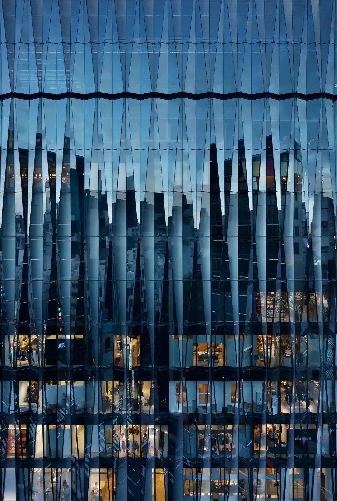 獨(dú)特的技術(shù)將玻璃框架隱藏,使玻璃面從周邊環(huán)境中脫穎而出,效果更加迷人,通過建筑和城市的環(huán)境之間形成了密切的聯(lián)系,為城市空間提供了一種新的互動方式。