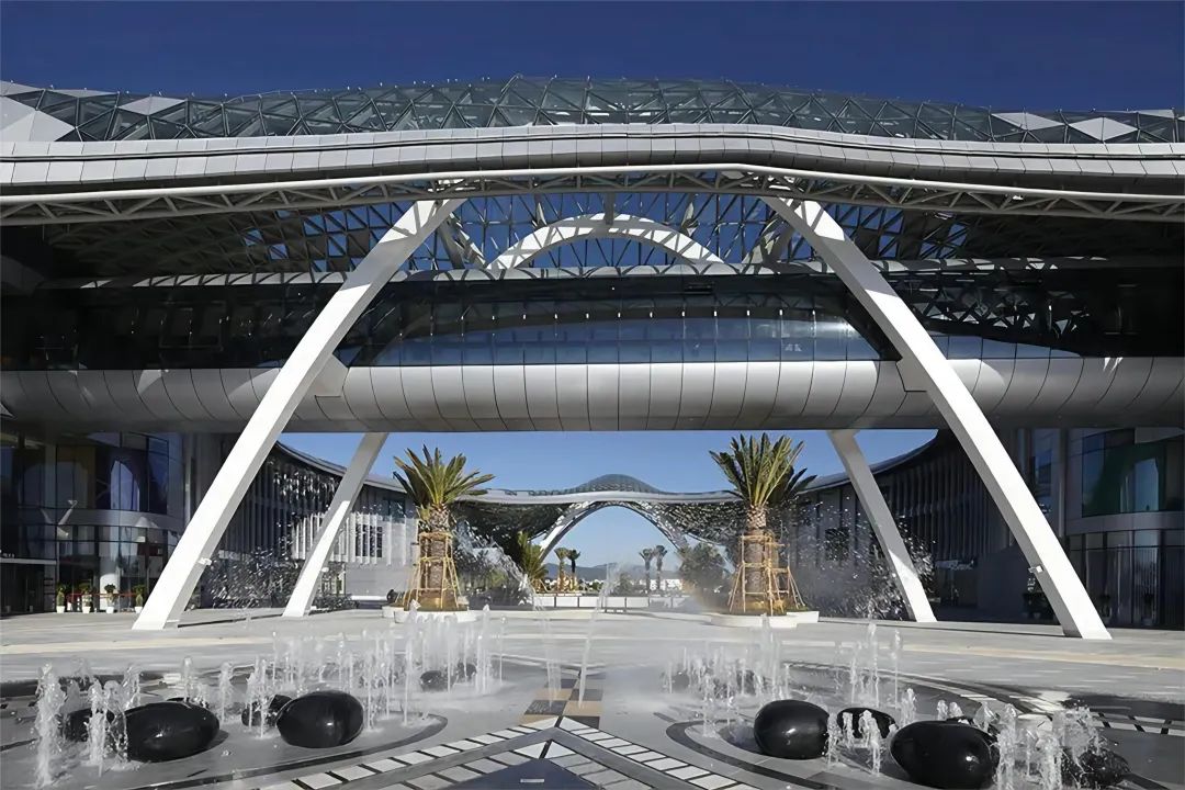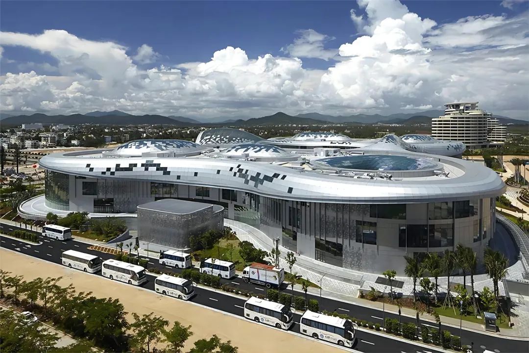 國旅海棠灣是全球最大的單體免稅商城之一,承擔(dān)了國內(nèi)國際游客“吃、住、行、游、購、娛”的需求。項目設(shè)計靈感來自象征三亞地區(qū)的海棠花造型,建筑室內(nèi)空間由主題中庭引導(dǎo)串聯(lián),北側(cè)的主入口、南側(cè)連廊以及大型自由體屋面連接兩座建筑,形成了一個整體。
