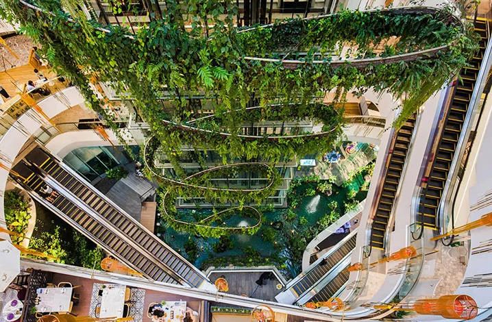 泰國街頭的購物中心以自然元素與景觀設(shè)計(jì)相結(jié)合的特點(diǎn)而聞名,并融入了更多的本土元素。這些商業(yè)空間的場(chǎng)景不僅擴(kuò)展到了街區(qū),而且為游客提供了室內(nèi)外交融的體驗(yàn),更增添了多元、豐富的藝術(shù)氛圍,這些打造方式對(duì)于中國商業(yè)來說有許多可借鑒之處。