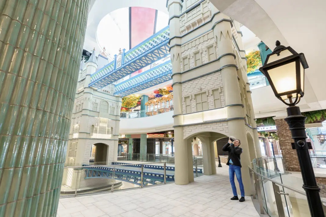 在不同的國家主題中,加入國家當(dāng)?shù)氐谋就廖幕?,用?xì)微的觀察力與創(chuàng)造力,為消費(fèi)者打造沉浸式的“在購物中心旅游”的空間。如LG層是以海盜船、海洋動(dòng)物、火烈鳥等熱帶風(fēng)情的裝飾物為主的加勒比海村主題風(fēng)格空間;