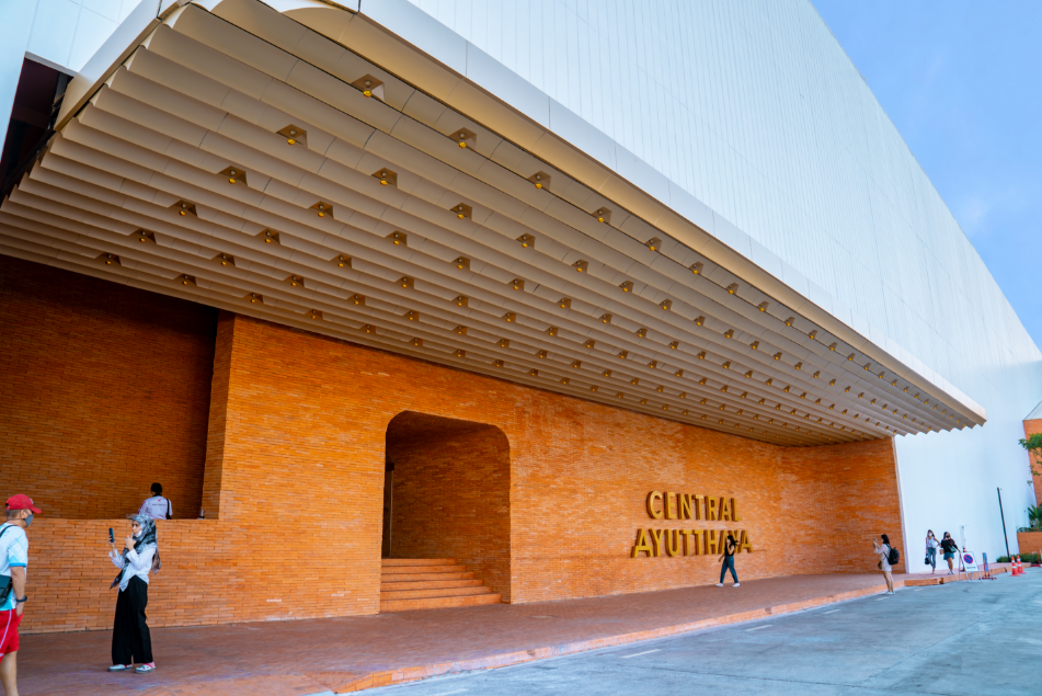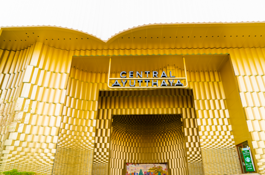 Central Ayutthaya購物中心采用紅磚裝飾的外立面,符合當(dāng)?shù)毓胚z址建筑風(fēng)格。其特色標(biāo)志中,字母A被設(shè)計(jì)成佛塔造型,以紀(jì)念大城府以古遺址而聞名。