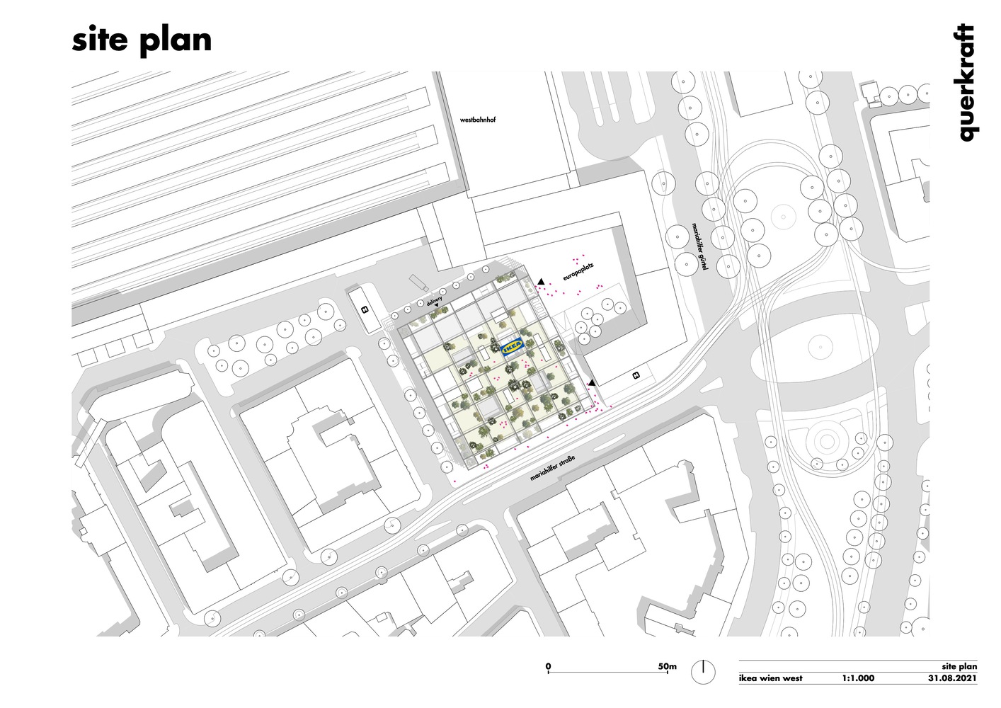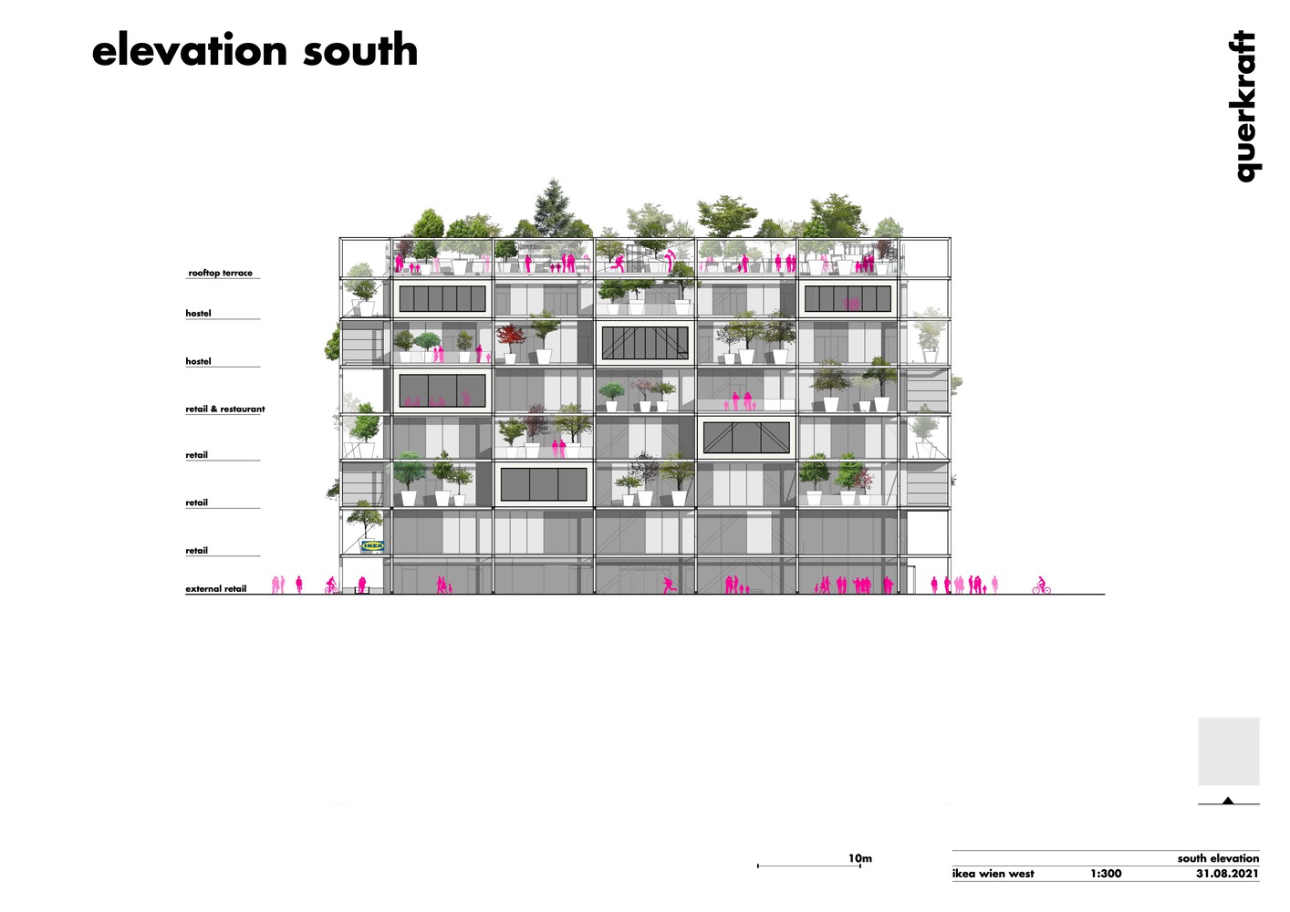 建筑物上和周?chē)?0棵樹(shù)。外墻和屋頂上的樹(shù)木對(duì)小氣候有可感知的影響。由于樹(shù)木可以被放置在建筑的不同高度和深度,所以比起在建筑的地面上可能種植的更多。在維也納市的 “城市熱島戰(zhàn)略計(jì)劃 “中,種植是最重要的措施之一。宜家家具店的攀援植物和樹(shù)木具有冷卻和加濕的效果–就像一種天然的空調(diào)系統(tǒng)。人行道上的空氣溫度也將得到改善。計(jì)算機(jī)模擬顯示,相關(guān)的溫度會(huì)下降1.5℃。