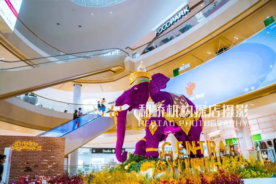 購物中心還充滿民族風(fēng)情,鏤空的門窗、柳藤的椅子、以器皿為主的裝飾,五米多的大象雕塑等這些典型的泰國本土元素,吸引無數(shù)消費(fèi)者打卡拍照。大城府引進(jìn)了400+品牌,多種豐富業(yè)態(tài)供消費(fèi)者選擇。