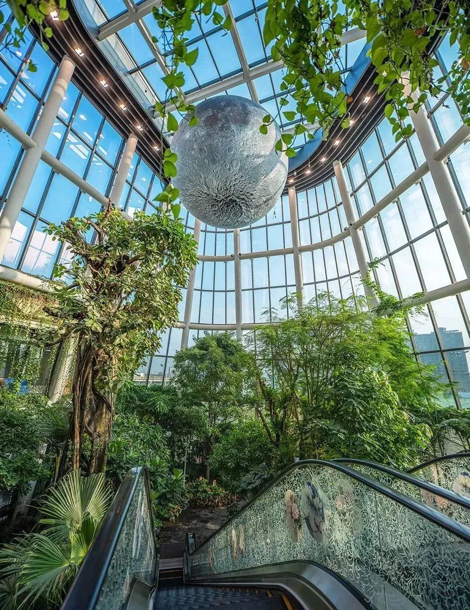 上海南翔印象城MEGA的另一個特點是生態(tài)和藝術(shù)的融合。商場內(nèi)設(shè)置了三個生態(tài)玻璃盒子、一個名為“超級月亮”的藝術(shù)裝置、一條400米沿建筑邊緣的屋頂星空跑道以及以“白鶴南翔”為主題的裝置藝術(shù)作品,讓人感受到了大自然與藝術(shù)之美的融合。