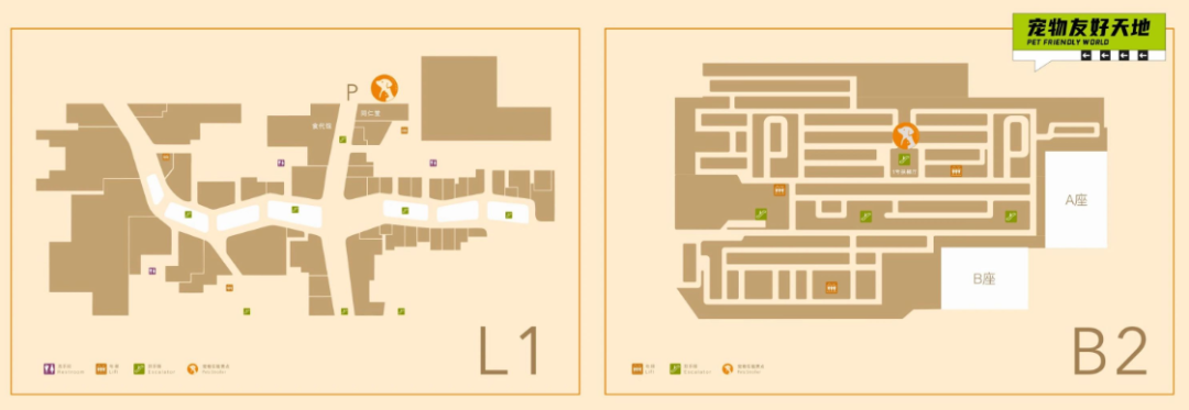 比如部分商場(chǎng)在導(dǎo)視系統(tǒng)中,會(huì)為愛(ài)寵人群專(zhuān)門(mén)設(shè)置一套寵物友好地圖,以此便于相關(guān)人群更高效找尋寵物設(shè)施、寵物友好型店鋪等;而在部分倡導(dǎo)環(huán)境友好的商場(chǎng)之中,則更多可見(jiàn)到將綠植與導(dǎo)視裝置融合強(qiáng)化公園感場(chǎng)景的做法;部分更多考慮便民設(shè)施及與城市公共設(shè)施連接的商場(chǎng),則會(huì)更加清晰地在不同導(dǎo)視中標(biāo)注每層空間母嬰室、自助服務(wù)機(jī)器、休息室、洗手間、路口及停車(chē)場(chǎng)等的具體位置。