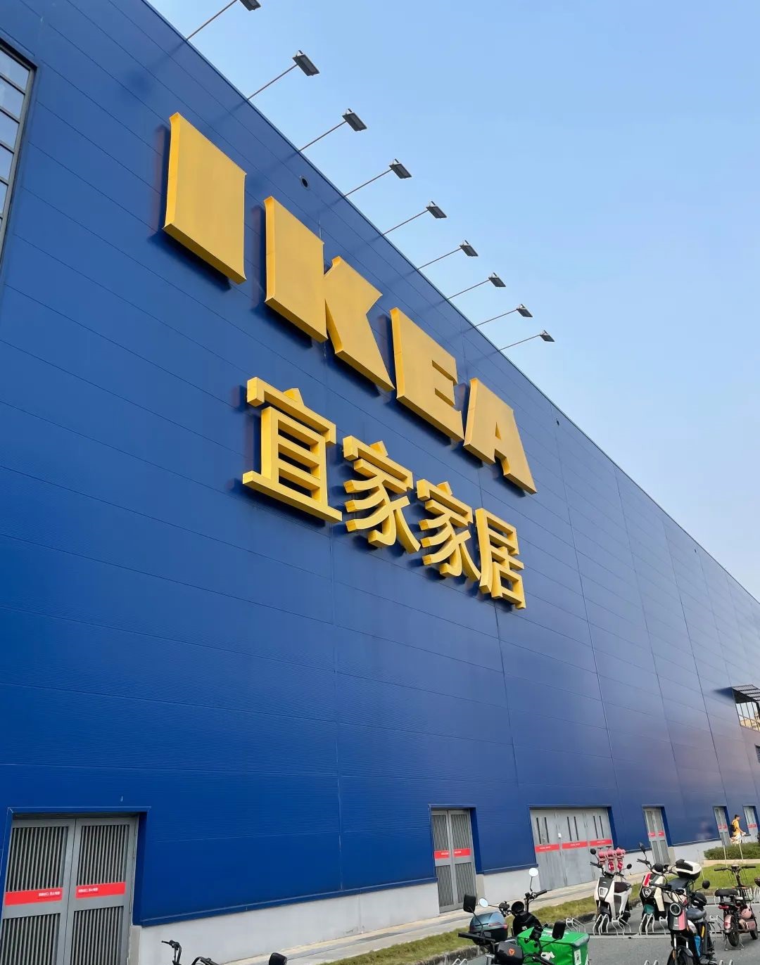 圖片△ 宜家的碩大標(biāo)志和藍(lán)盒子造型