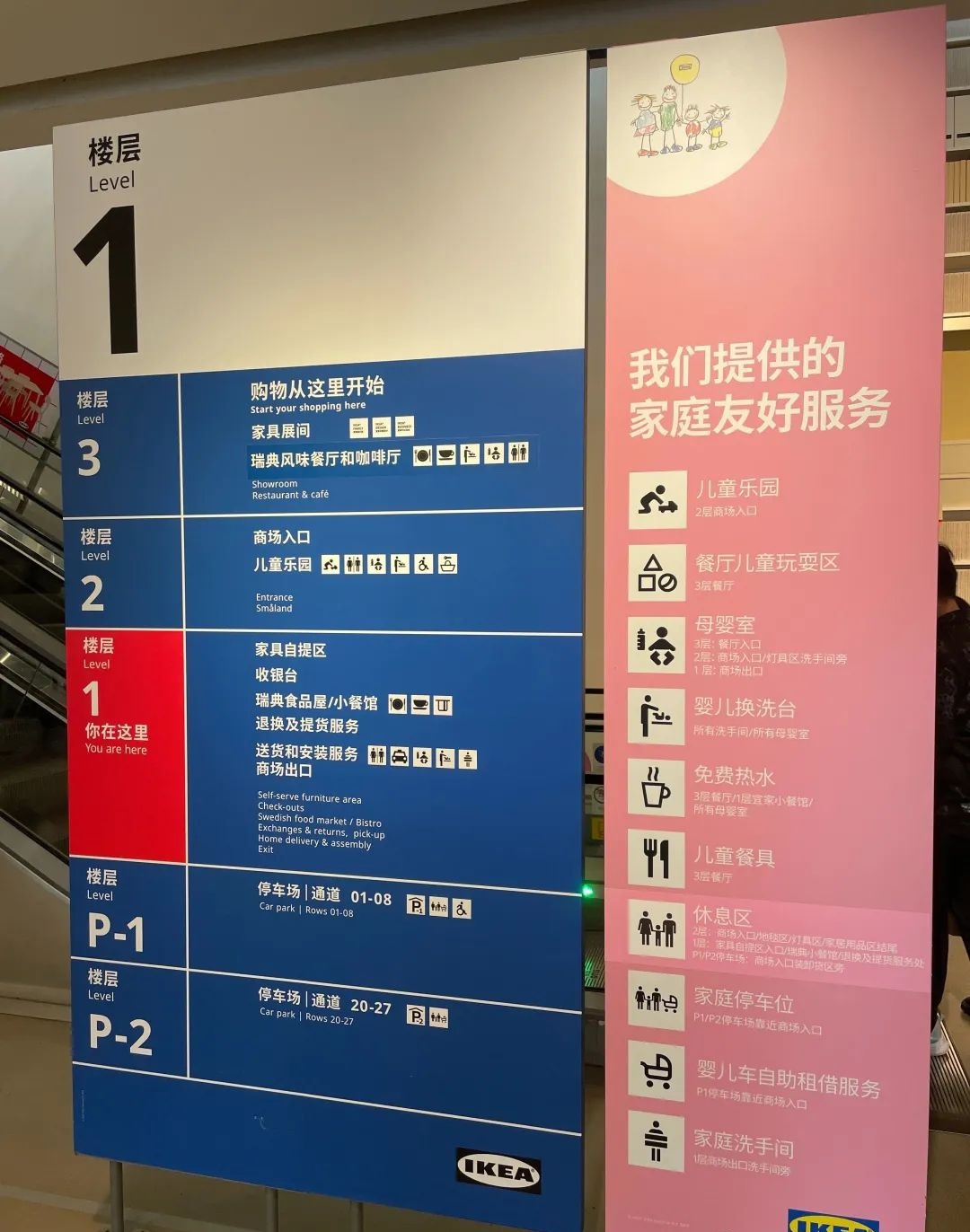 賣場(chǎng)路線在恰當(dāng)?shù)奈恢孟蝾櫩吞峁┛赡苄枰姆?wù),比如:紙質(zhì)尺子、商品登記表格和鉛筆(部分賣場(chǎng)已取消紙筆,轉(zhuǎn)而代之的是引導(dǎo)顧客通過(guò)拍照保存商品信息)、購(gòu)物袋、價(jià)格查詢掃描儀,提供電腦供顧客自定義組合家具及查看效果,或查詢更詳細(xì)的商品信息;在墻上展示醒目的商品標(biāo)簽的用法說(shuō)明;還設(shè)置了工作人員服務(wù)信息臺(tái)、母嬰室、兒童游樂(lè)區(qū)、洗手間;洗手間的外面還設(shè)置了可以暫存已選商品的掛鉤/購(gòu)物車停放區(qū);賣場(chǎng)通道及洗手間均有方便殘障人士的設(shè)計(jì);很多地方都有清晰和親切的提示標(biāo)語(yǔ),所有這些考慮周全及細(xì)膩的設(shè)計(jì)都相當(dāng)貼心。
