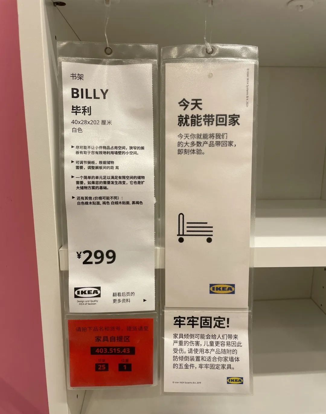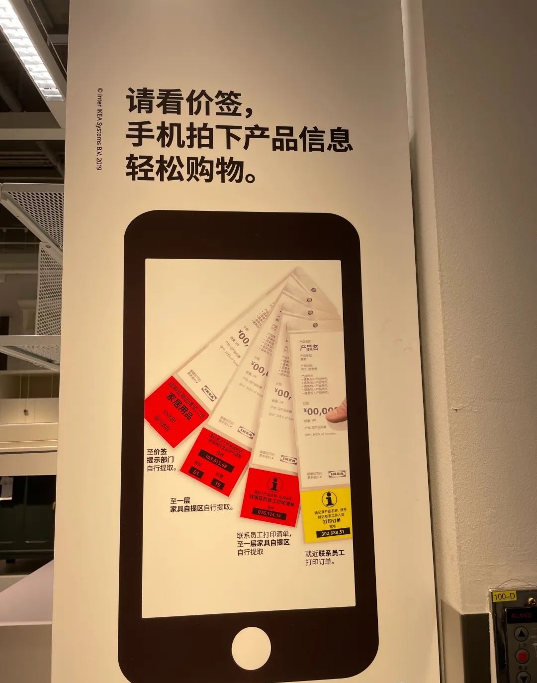 △ 宜家的商品標(biāo)簽(紅色標(biāo)簽的商品需要到商品展區(qū)或提貨區(qū)自提,部分商品也需要打印訂單,標(biāo)簽上都會(huì)有說(shuō)明)