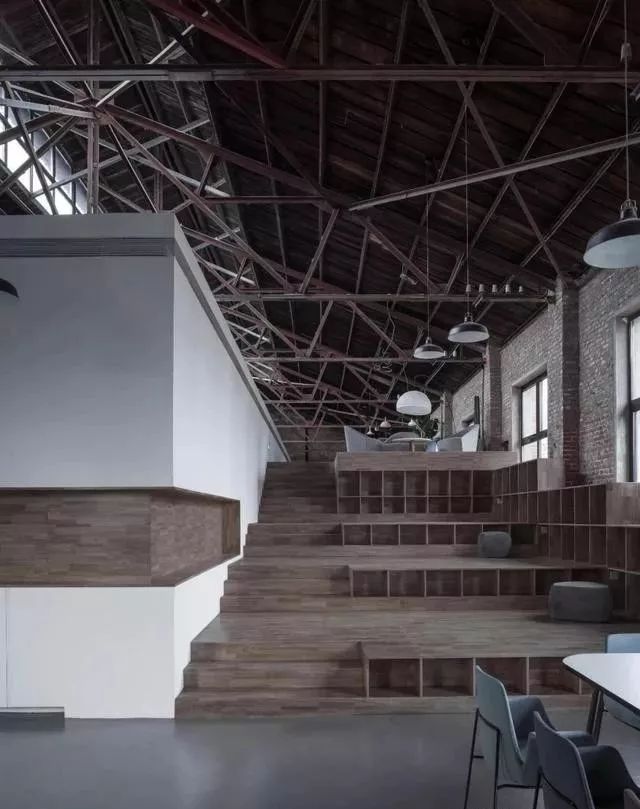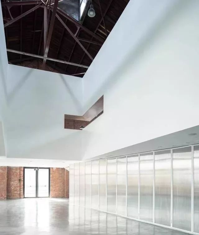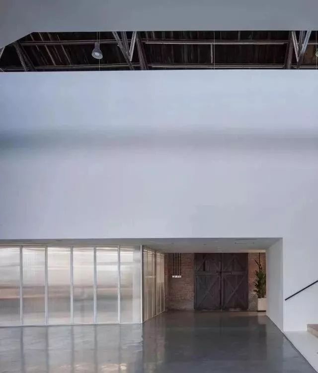 原始建筑是一棟高大的生產(chǎn)車間,有著極為明亮寬敞的空間感,這讓設(shè)計師意識到這個廠房的高度和氣質(zhì)實際在訴說著他自己的獨特歷史——即外部的世界在不斷變化,而廠房是一個觀察著這個世界的不變的場所,歷史感造就了與現(xiàn)實世界的脫離,所以廠房在現(xiàn)實的外部存在著。從建筑物的角度,設(shè)計師要處理一個“室內(nèi)”的空間,而從空間意志的角度,設(shè)計師必須要面對它“意義上的外部”這一現(xiàn)實。