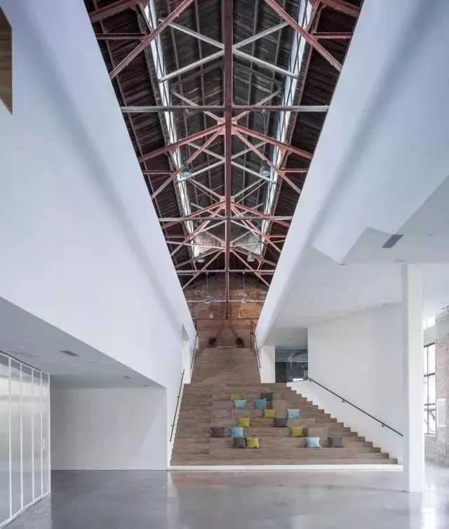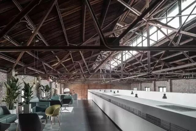 這兩部分從空間的使用要求上其實存在著對立,公共活動部分要求盡量的開敞,大空間,而展示洽談辦公則希望相對私密。這就形成了具體設(shè)計中最大的問題,即如何讓兩部分共同存在一個連貫的空間中,但卻互不干擾,同時,每個部分空間都能感受到這部分功能是整個廠房的核心空間,而不被硬性分割成兩部分。