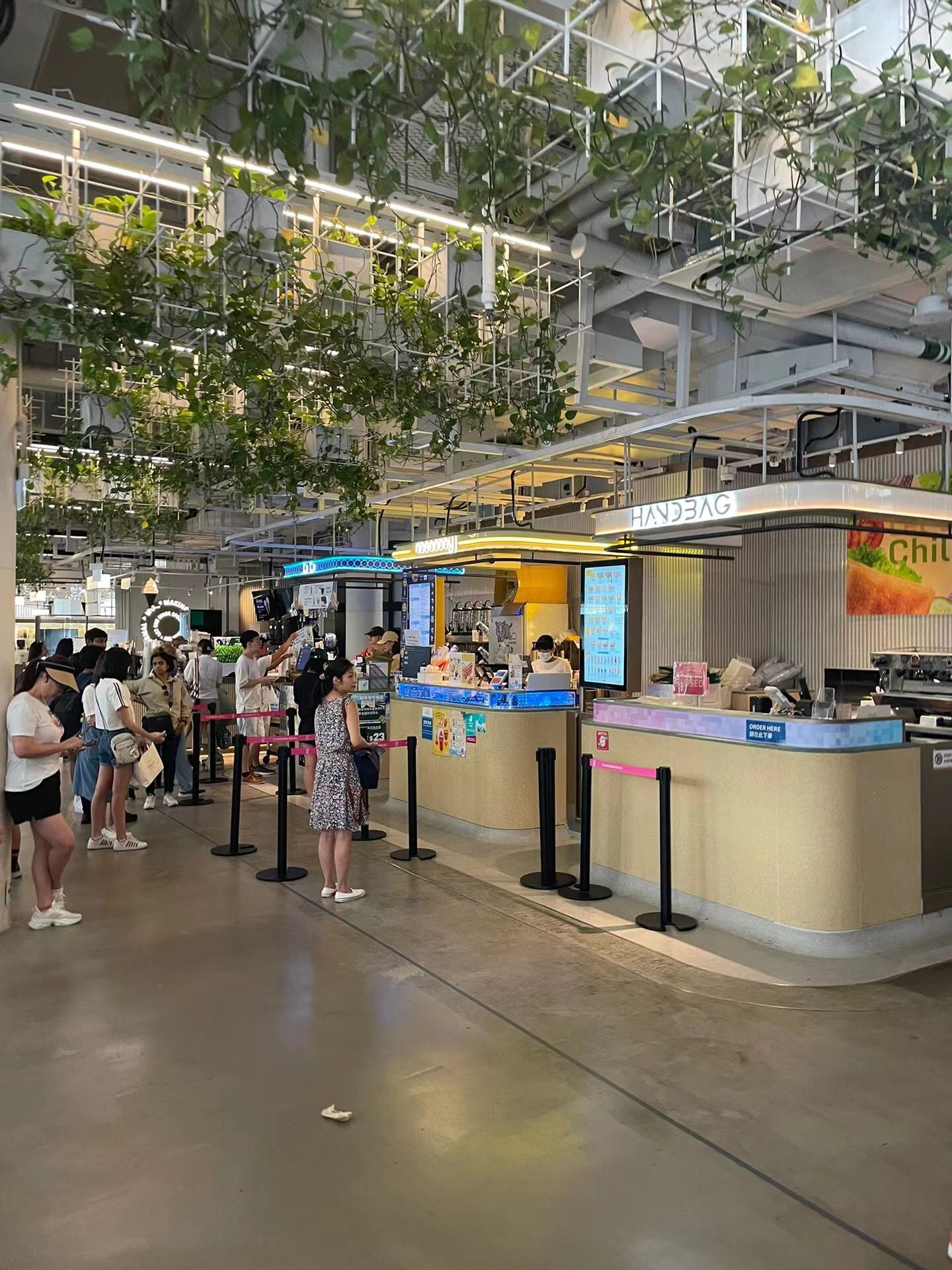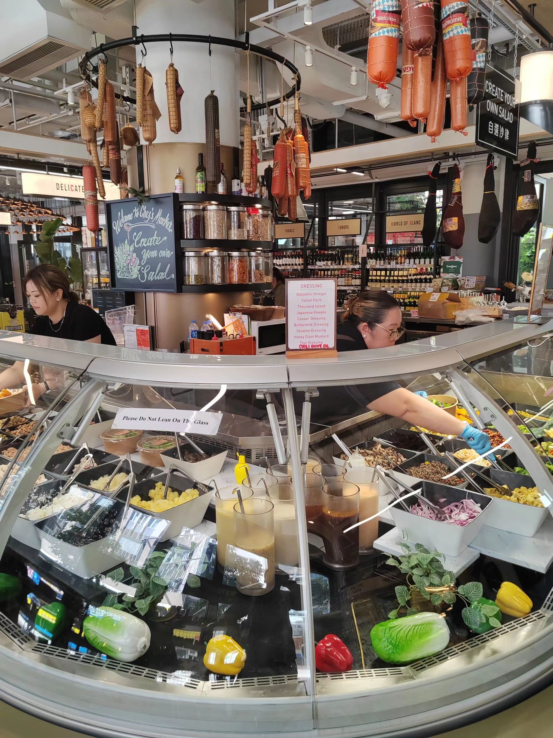 G層是CHEF’S MARKET和中環(huán)食坊。市場囊括肉類、海鮮、蛋糕、醬料、食材、酒類,以及沙拉、熟食、外賣午餐的食品市場,恍然有一種身臨菜市場日常生活的感覺。